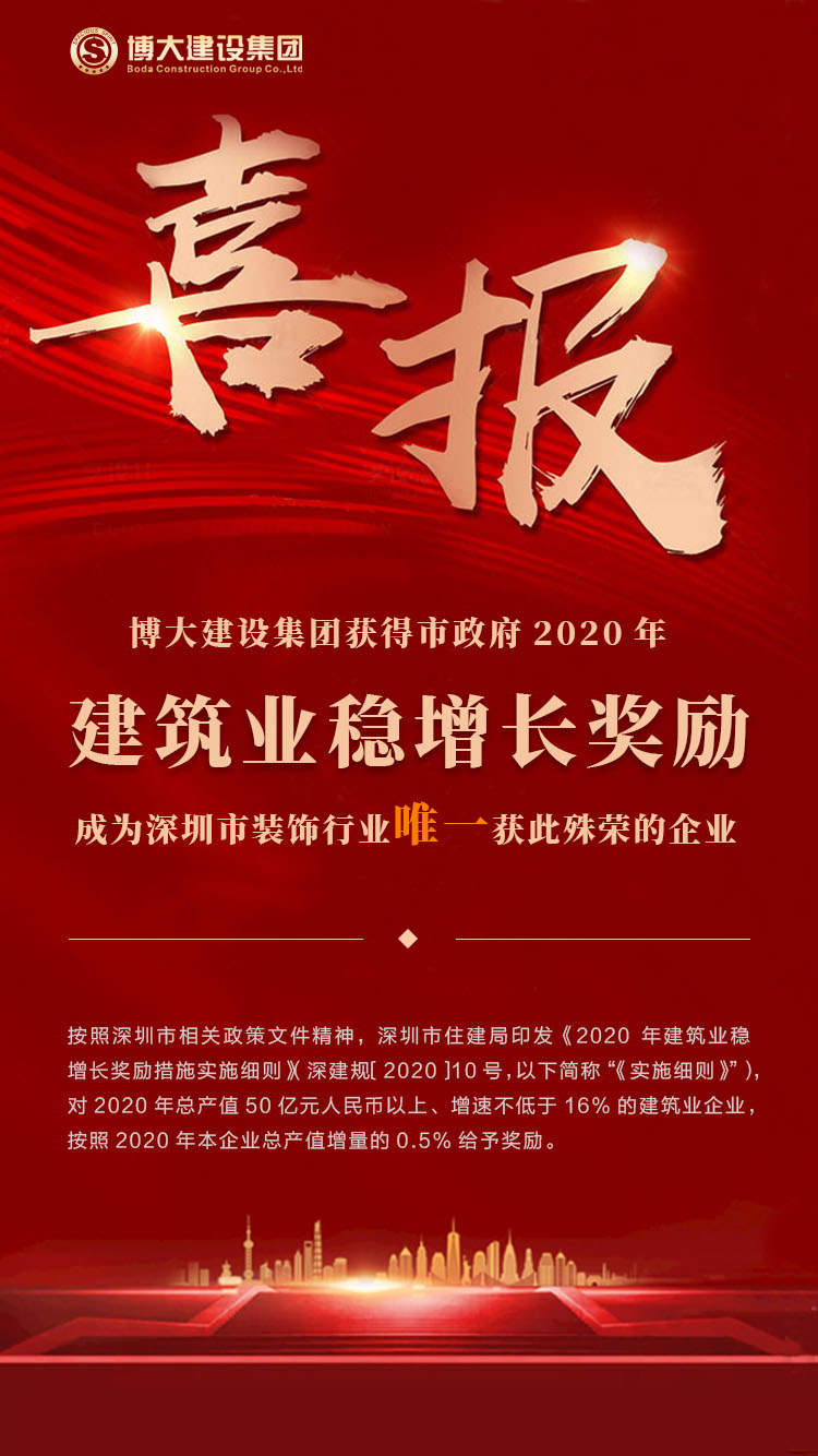 行業(yè)唯一 | 博大榮獲深圳市政府2020年建筑業(yè)穩(wěn)增長獎勵