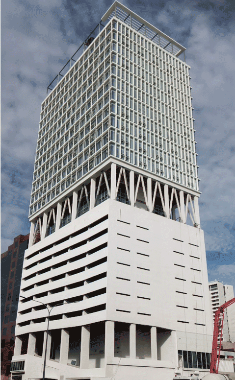 項(xiàng)目位于巴布亞新幾內(nèi)亞首都莫爾茲比港TOWN區(qū)CBD核心地段,總占地面積1808平方米,規(guī)劃總建筑面積2.9萬平方米,是“南太平洋第一高樓”。博大施工范圍包括但不限于幕墻工程、遮陽板系統(tǒng)、幕墻本身的防雷接地裝置、幕墻龍骨、幕墻封邊封頂?shù)取?