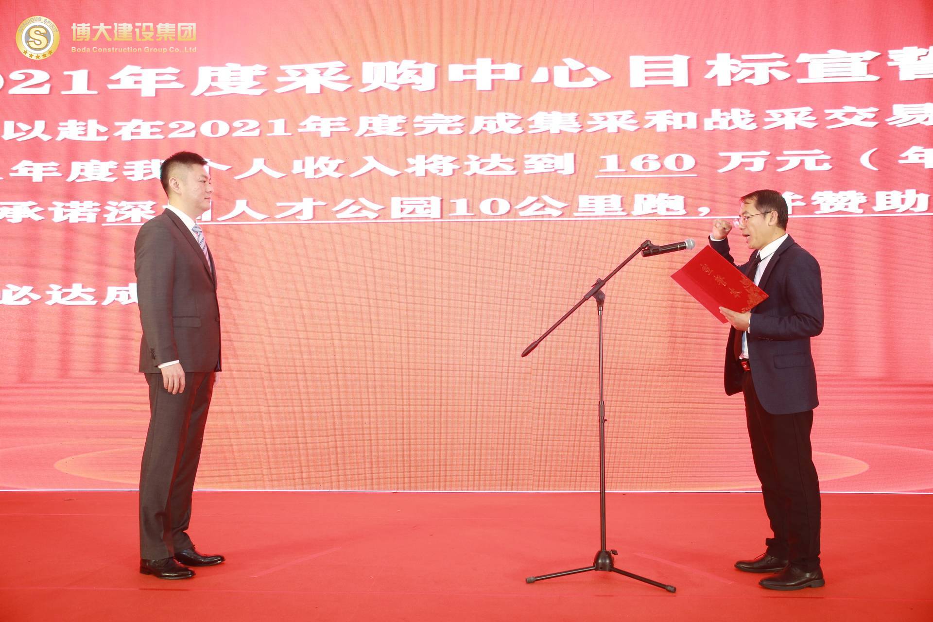 各戰區、中心、工廠負責人逐一上臺,在全體合伙人的見證下對2021年的部門目標和個人收入目標莊嚴宣誓,洪董代表集團對股東宣誓!